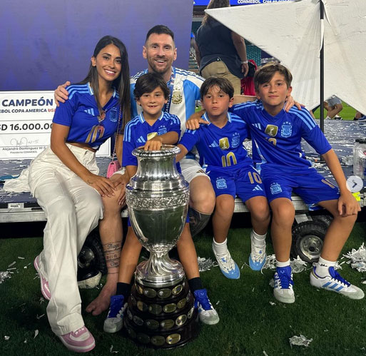 لیونل مسی عنوان جدیدی را به دوران درخشان خود اضافه می کند. یکشنبه گذشته، او آرژانتین را رهبری کرد تا در مسابقات کوپا آمریکا در بازی مقابل کلمبیا، 1 – 0 پیروز شود. همسرش آنتونلا روکوزو عکس هایی را در کنار خانواده شان برای بزرگداشت این مناسبت به اشتراک گذاشته است و حمایت بی پایانی از همسرش را نشان می دهد.
