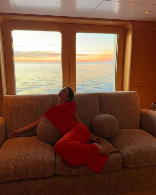 کایلی صحنه‌ های غبطه‌ انگیزی را در اینستاگرامش به اشتراک گذاشت، در حالی که روی کاناپه نشسته بود و خورشید پشت سرش غروب می‌ کرد و در آب سبز آبی روشن کایاک می‌ کرد. او همچنین با یک شهر ساحلی در پس زمینه سلفی گرفت. او در کنار عکس‌ها نوشت: «خاطرات اصلی».
